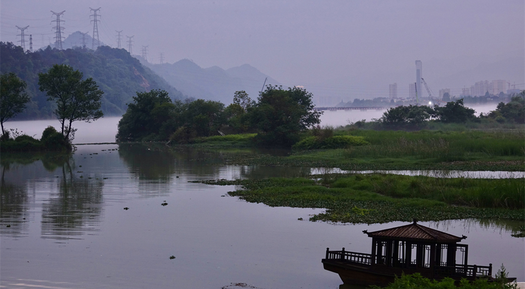 自下游興建富春江水電站后,《富春山居圖》描繪的意境雖不復(fù)存在,但這一帶淹為水庫(kù)后,兩岸青山點(diǎn)點(diǎn),形成了“七里揚(yáng)帆”等當(dāng)今的嚴(yán)陵八景。李仁奇 攝
