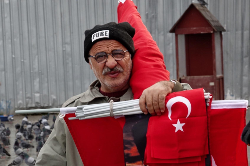 出售國(guó)旗的小販。李仁奇 攝