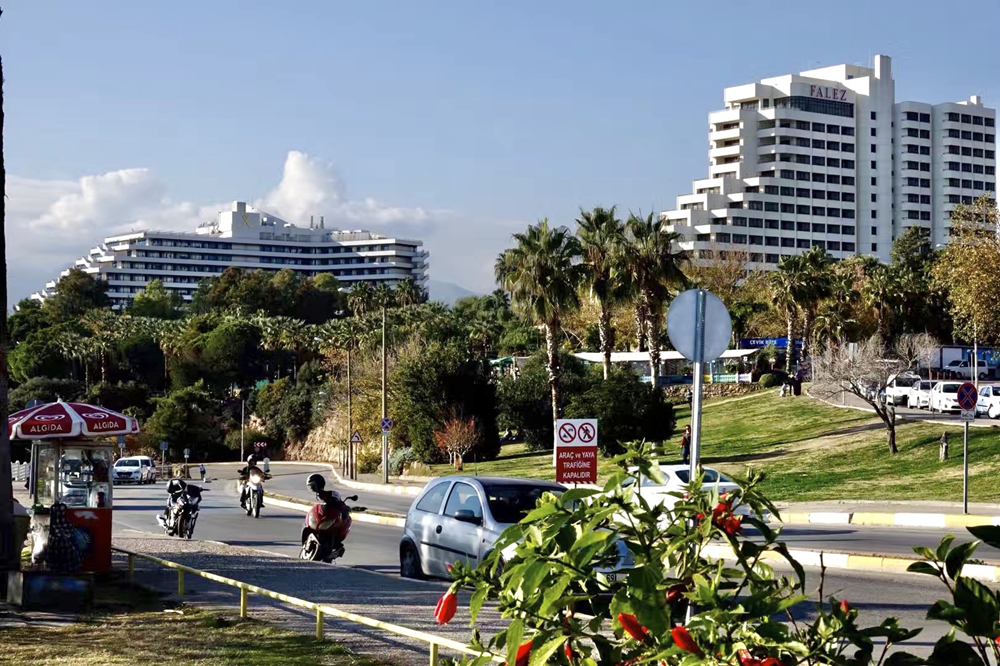 安塔利亞被群山環(huán)繞,成行的棕櫚樹構(gòu)成一條條林蔭大道,西面是一望無(wú)際的拉拉沙灘,南瀕清澈的地中海,北臨郁郁叢叢的托羅斯山脈。市區(qū)人口約60萬(wàn),每年夏季有大量游客,特別是俄羅斯人涌入。李仁奇 攝