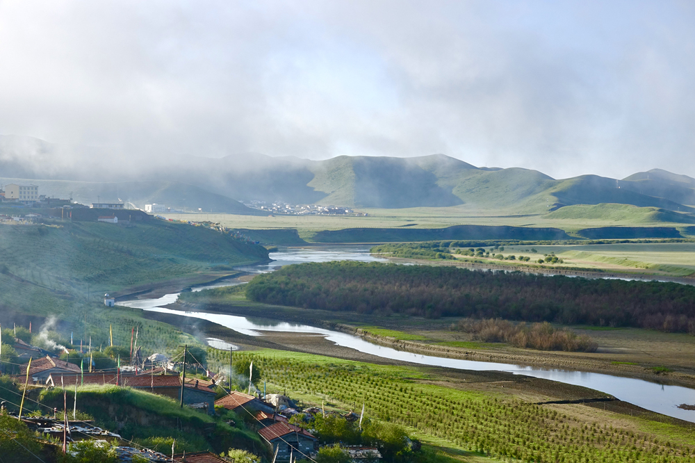 黃河的這一段流程是四川與甘肅的界河,河西為甘肅,河?xùn)|為四川。黃河自甘肅一側(cè)來(lái),白河自黃河第一灣灣頂匯入,型如“S”型,黃河之水猶如仙女的飄帶從天邊緩緩飄來(lái),在四川邊上輕輕撫了一下又轉(zhuǎn)身飄回青海,故此地稱(chēng)九曲黃河第一灣。李仁奇 攝