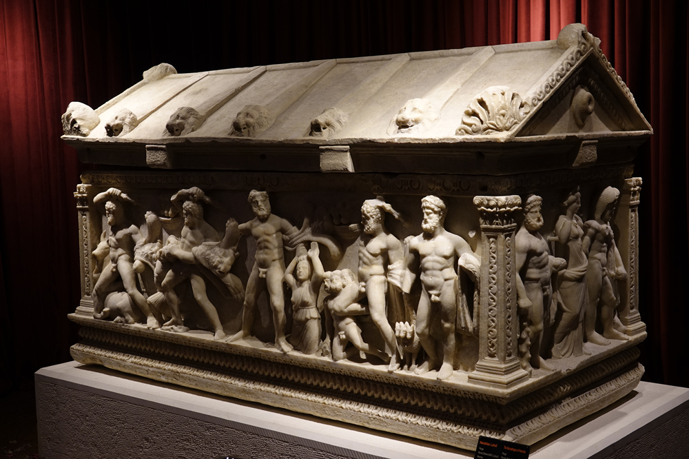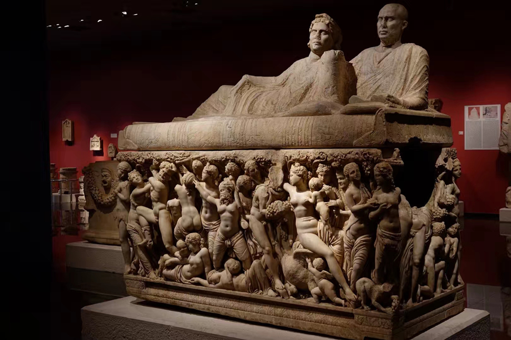赫拉克勒斯石棺,它的側(cè)立面描繪赫拉克勒斯斬殺九頭蛇、與獅子搏斗、偷盜金蘋果等12項苦力后升為神的傳奇故事,浮雕保存完整、栩栩如生,展現(xiàn)了古羅馬精湛的雕塑工藝。李仁奇 攝