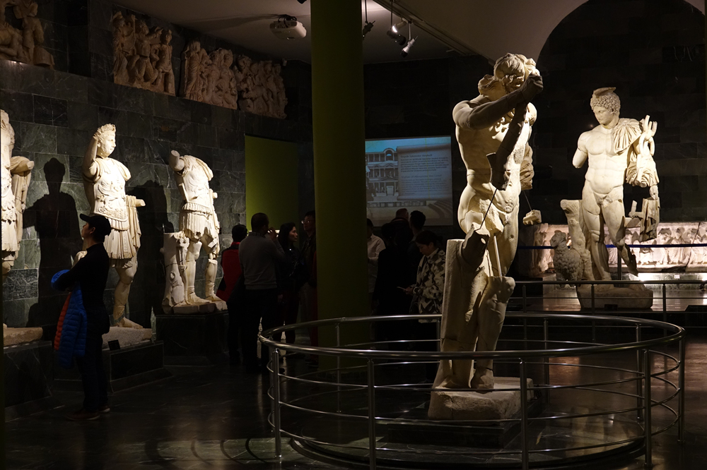 大量公元2—3世紀的人體雕塑令人目不暇接,這個時期也是該地區(qū)歷史發(fā)展中最為繁盛的階段。館內(nèi)陳列著眾多古希臘古羅馬眾神的雕像,號稱“萬神殿”。這些雕像是從公元8世紀的古墓里面發(fā)掘出來的,包括眾神之神宙斯、天后赫拉、智慧女神雅典娜、愛情與美麗女神阿芙羅狄忒、太陽神阿波羅、大力神赫拉克勒斯等。李仁奇 攝
