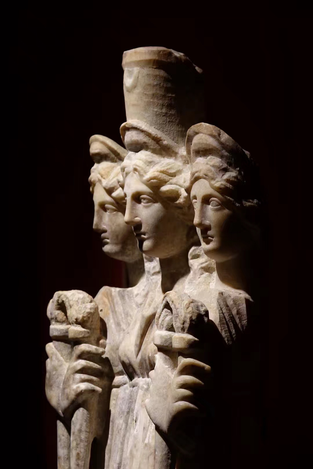 赫卡忒,希臘神話中一位善惡兼?zhèn)涞呐?。在雕塑中有三頭三身六臂,分別向著三個不同的方向,代表了她作為三岔路口守護者的角色。李仁奇 攝