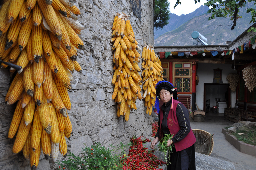 嘉絨藏族是居住在四川省甘孜藏族自治州、阿壩藏族羌族自治州部分地區(qū)以及雅安市、涼山彝族自治州個(gè)別鄉(xiāng)鎮(zhèn),講嘉絨語,以農(nóng)業(yè)生產(chǎn)為主的藏人,藏區(qū)稱他們?yōu)椤敖q巴”。李仁奇 攝
