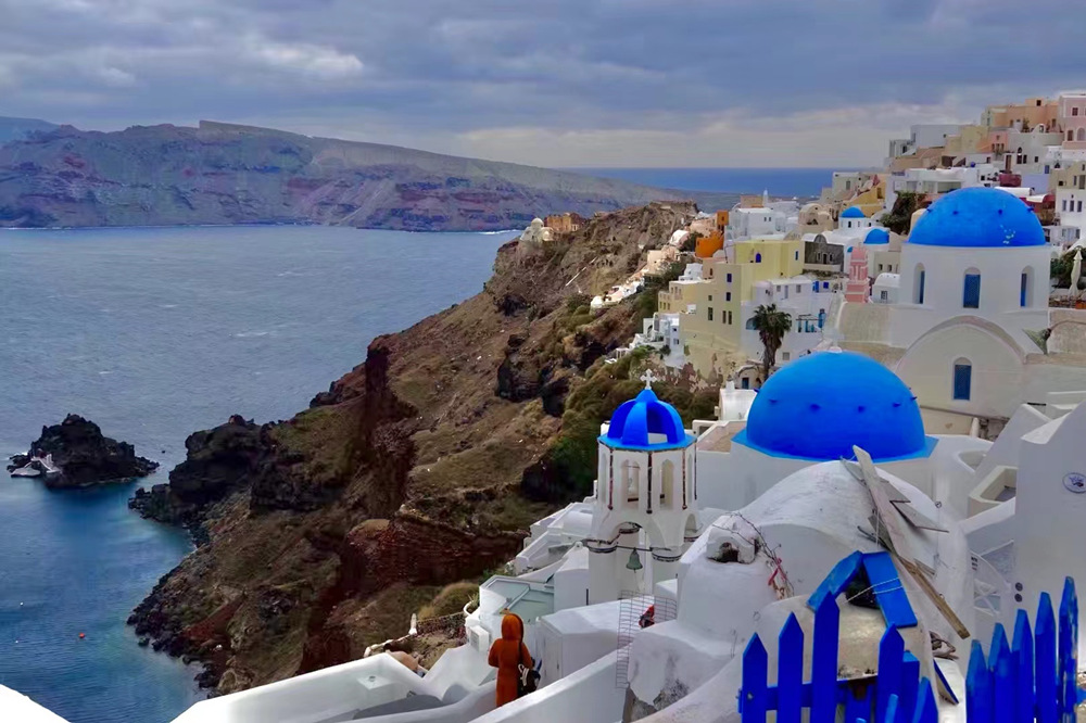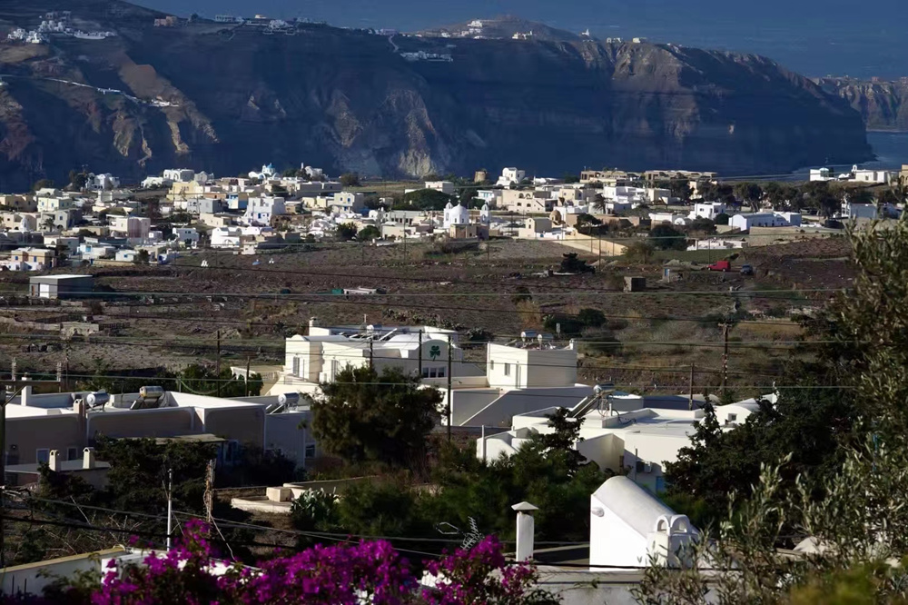 現(xiàn)在的圣托里尼島是希臘最著名的旅游勝地,以其充足的陽(yáng)光,宜人的地中海氣候、獨(dú)特的地形地貌和藍(lán)白色的建筑吸引著全球的游客。李仁奇 攝