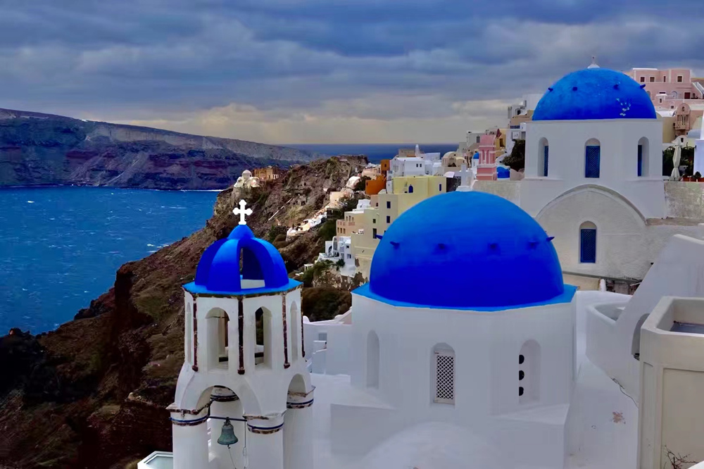 藍(lán)頂教堂曾經(jīng)登上美國(guó)《國(guó)家地理》雜志的封面,使圣島聲名遠(yuǎn)播。李仁奇 攝