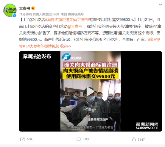 (相關(guān)報(bào)道:讓眾多店家崩潰的潼關(guān)肉夾饃商標(biāo)許可費(fèi)國家知識(shí)產(chǎn)權(quán)局回應(yīng)了)