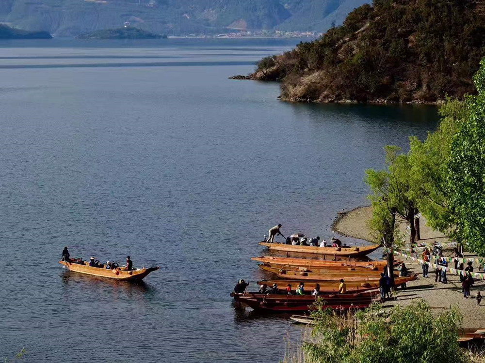 瀘沽湖沿岸居住著蒙古族和彝、漢、納西、藏、普米、白、壯等7個民族的居民約1.3萬人。李仁奇 攝