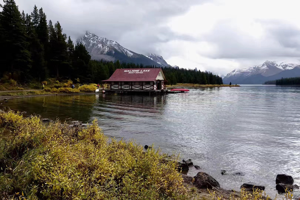 馬林湖是加拿大落基山脈最大的冰川湖,寬22公里、面積2066平方米、深約1公里。在湖的周邊能看到野生動物的蹤跡,可以乘機動船游覽,眺望兩側有冰川的群山。李仁奇 攝