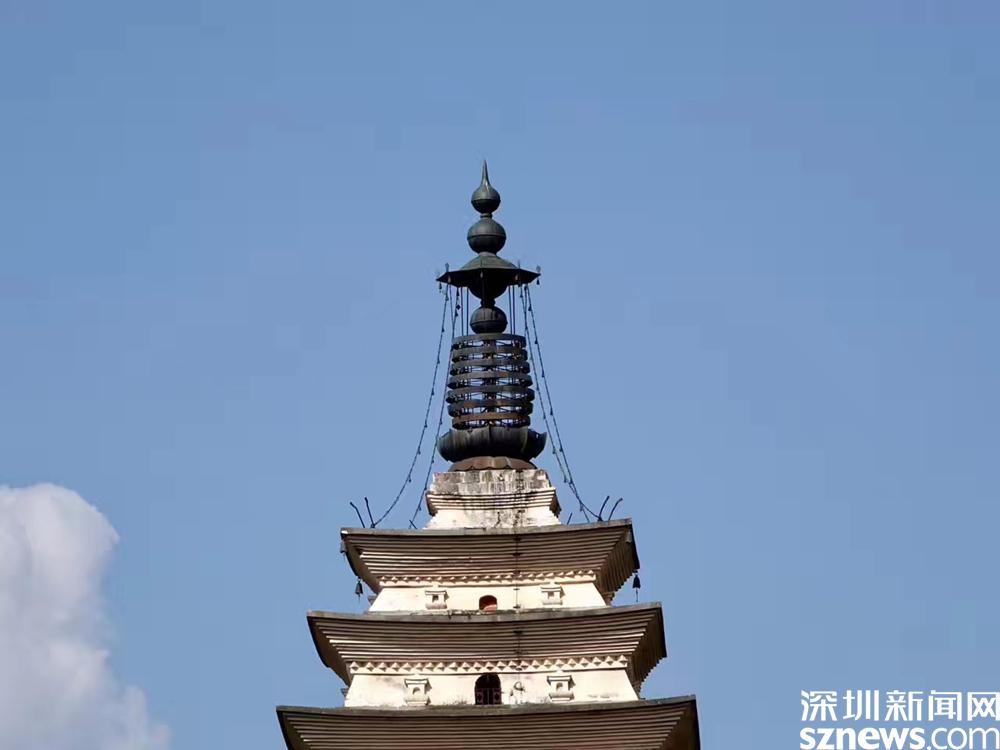 在千尋塔的塔頂四角,原來鑄有4只巨大的金翅鳥,“金翅鳥”又名“大鵬金翅鳥”,為佛教護(hù)法神中的“天龍八部”之一,傳說能鎮(zhèn)水患,后毀于地震。李仁奇 攝