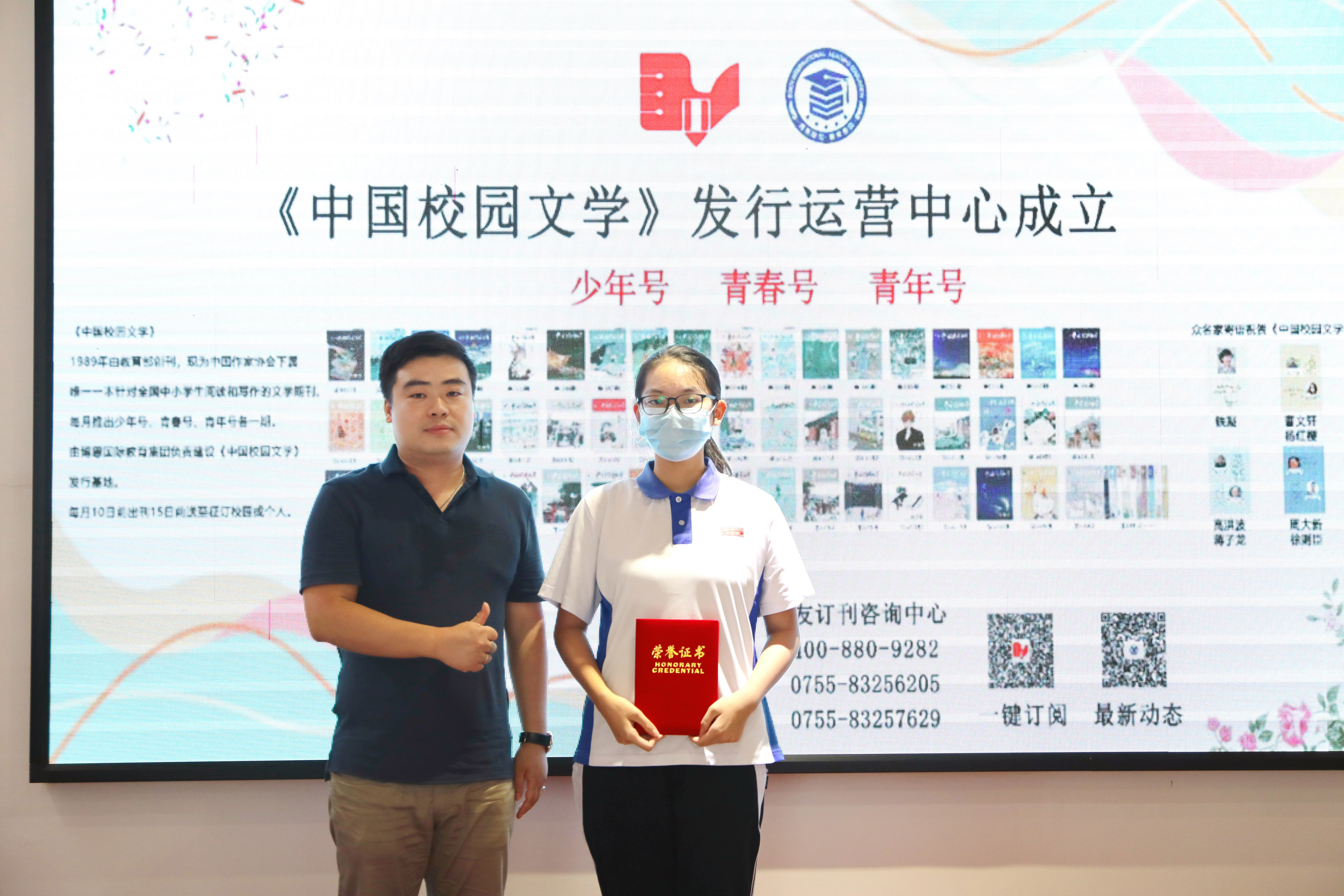 “一起向未來(lái)?鵬城冬奧故事”,中國(guó)校園文學(xué)獲獎(jiǎng)代表與頒獎(jiǎng)嘉賓合影