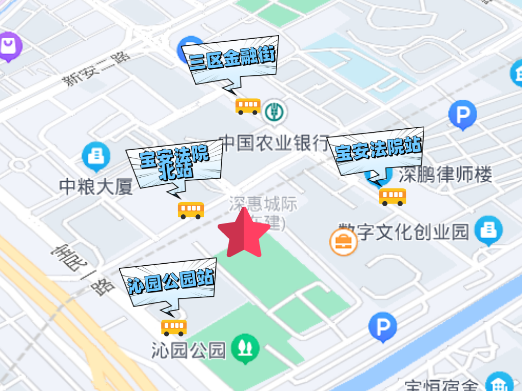 周邊公共交通站點(diǎn)(僅供參考):寶安法院北站(公交B832路、B904路、M210路),三區(qū)金融街站(公交603路、605路、B832路、M210路),沁園公園站(公交603路、605路、B904路、M210路、395路),寶安法院站(公交395路、603路、605路、B904路、M210路)