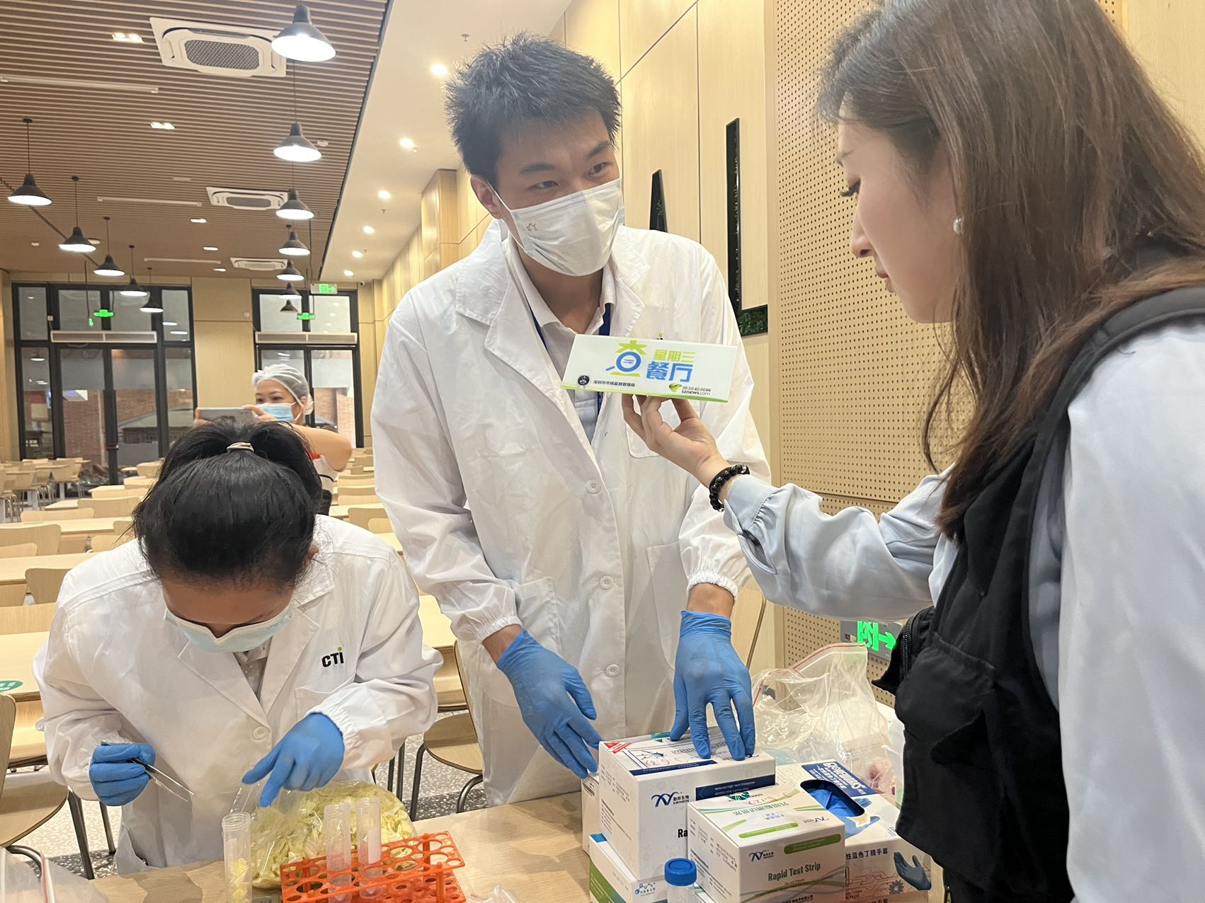 快檢人員正在檢測樣品。
