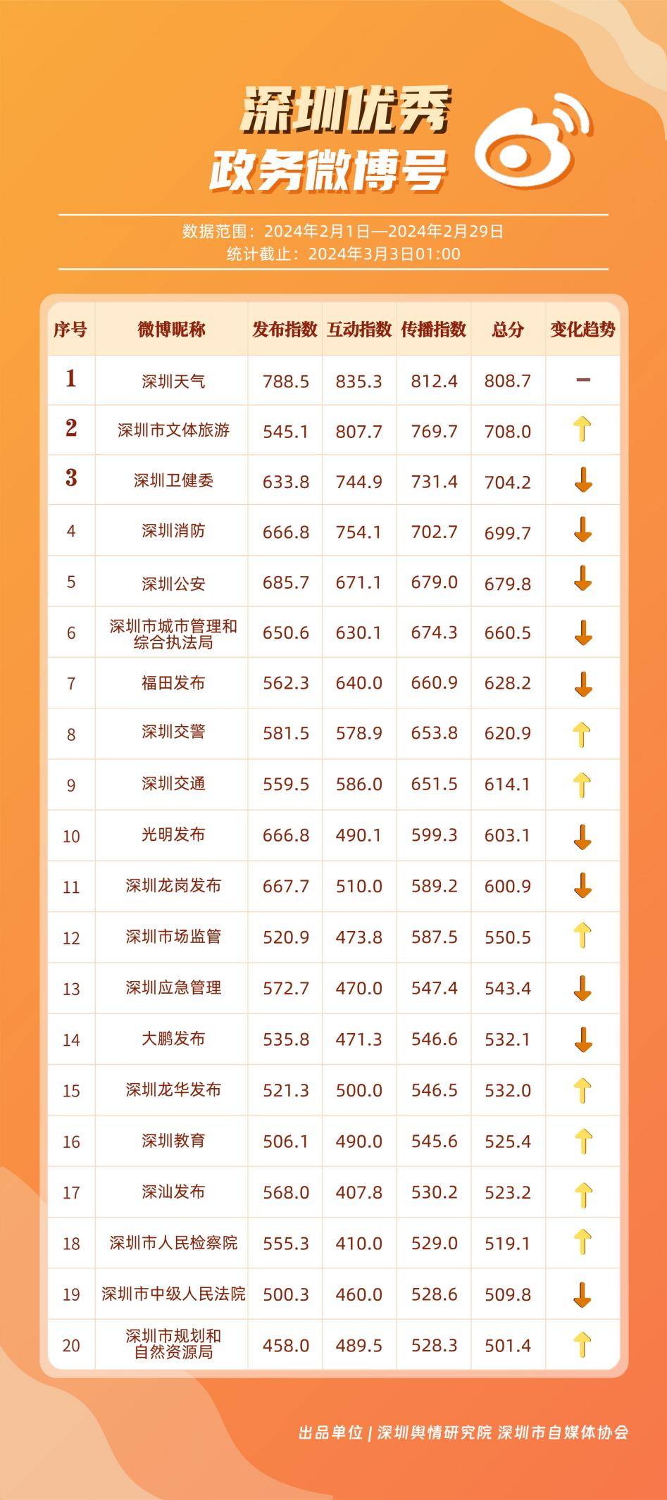 深圳新聞網(wǎng)3月21日訊(記者 陳曉君 實(shí)習(xí)生 蔡曉婷)3月19日,深圳輿情研究院、深圳市自媒體協(xié)會(huì)聯(lián)合發(fā)布《深圳優(yōu)秀政務(wù)新媒體矩陣》(2月期),市衛(wèi)生健康委、福田區(qū)、市氣象局、龍華區(qū)、龍崗區(qū)、光明區(qū)、市應(yīng)急管理局、市公安局、市交通警察局和深汕特別合作區(qū)新媒體矩陣榮獲“深圳優(yōu)秀政務(wù)新媒體矩陣”稱號(hào)。這些新媒體矩陣主要結(jié)合市民實(shí)際需求進(jìn)行內(nèi)容創(chuàng)作與更新,推動(dòng)信息傳播質(zhì)效提升。