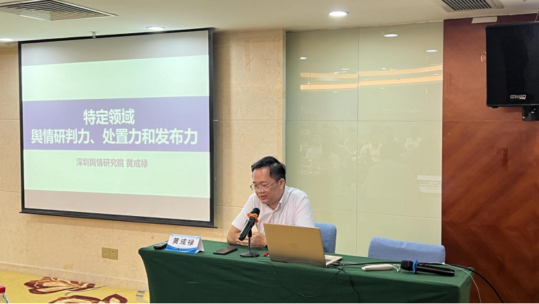 深圳新聞網(wǎng)2024年8月2日訊(記者 蔡雪曼 實習(xí)生 謝臻兒)為提高全市特定領(lǐng)域人員輿情工作素養(yǎng),深化輿情意識和認(rèn)知,助力營造良好的輿論氛圍,7月25日下午,某市直單位舉辦專題培訓(xùn)班,邀請深圳輿情研究院執(zhí)行院長黃成祿擔(dān)任授課老師,圍繞《特定領(lǐng)域輿情研判力、處置力和發(fā)布力》主題展開授課。