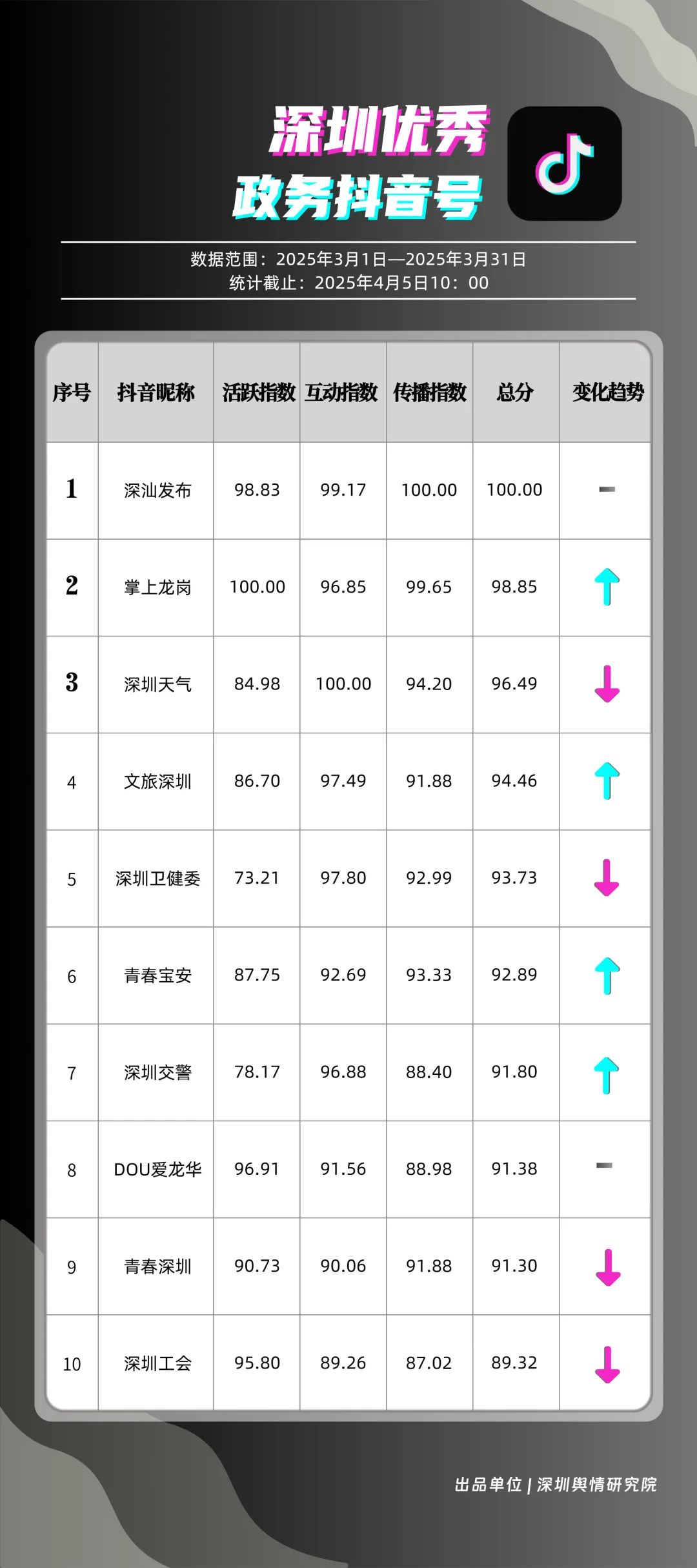 2025年3月期《深圳優(yōu)秀政務(wù)新媒體矩陣》發(fā)布,讓我們共同關(guān)注哪些矩陣以精準(zhǔn)傳播、智慧服務(wù)與創(chuàng)新實(shí)踐,在政務(wù)新媒體領(lǐng)域打造出具有示范價(jià)值的標(biāo)桿案例,以矩陣合力構(gòu)建政務(wù)傳播新生態(tài),為深圳城市網(wǎng)絡(luò)形象塑造持續(xù)注入新動(dòng)能。