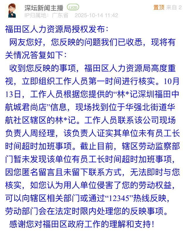 優(yōu)化建議:網(wǎng)民投訴的核心有兩點(diǎn),一是外包公司無勞務(wù)派遣資質(zhì)卻代繳社保、發(fā)放工資,二是工作時間過長。福田區(qū)人力資源局雖回應(yīng)已核實(shí)涉事餐飲單位“無長時間超時加班”,但對網(wǎng)民反映的外包公司無資質(zhì)這一關(guān)鍵問題未作回應(yīng)。此情況反映出,資質(zhì)核查工作亟需加強(qiáng),如對相關(guān)餐飲單位開展用工合規(guī)專項(xiàng)檢查,以精準(zhǔn)舉措解決無資質(zhì)外包這一核心痛點(diǎn),提升市民對勞動者權(quán)益保障工作的認(rèn)可度。