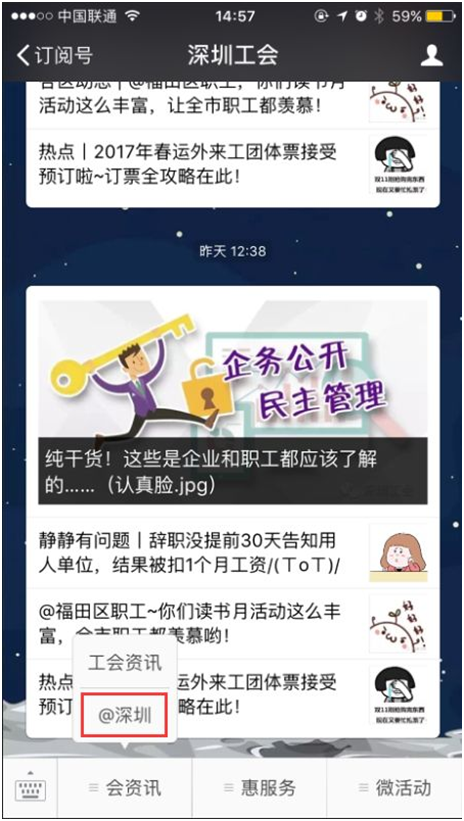 11月23日,深圳市總工會官方微信“深圳工會”正式入駐“@深圳”平臺。