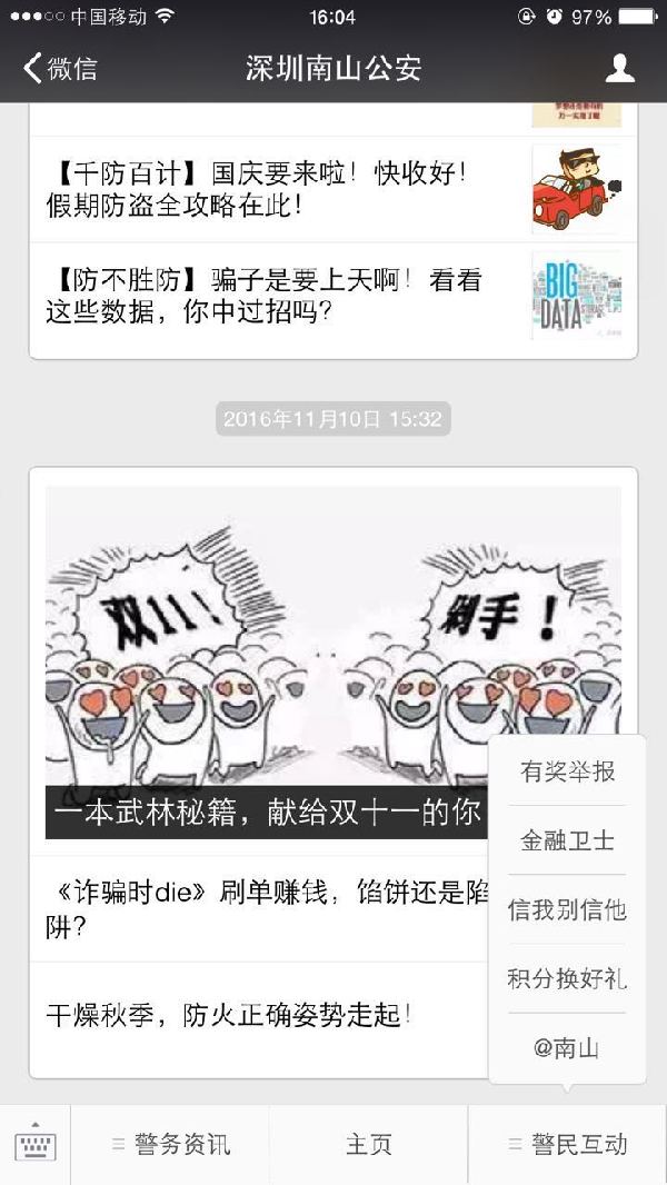 11月23日,深圳南山公安分局官方微信“深圳南山公安”正式入駐“@深圳”平臺。