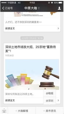 12月1日,中原地產(chǎn)代理(深圳)有限公司官方微信“中原大咖”正式入駐“@深圳”平臺。