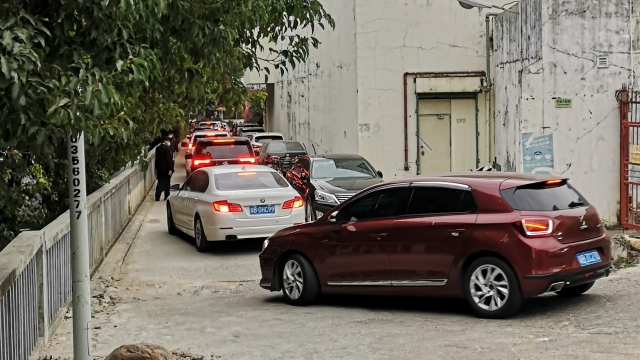 竹園賓館旁道路變停車場行人通行難,回應(yīng):年后完工