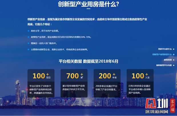在政府提供的“創(chuàng)新型產業(yè)用房申請”頁面,既有熱門房源、最新發(fā)布和可申請項目的信息簡介、地圖,還有租售流程路徑提示、同區(qū)域房源比較、720度全景看房的數據跑腿便捷優(yōu)質服務等。平臺還匯聚了由萬科、寶能、招商、星河、碧桂園等品牌開發(fā)商提供的“優(yōu)質市場產業(yè)用房”。
